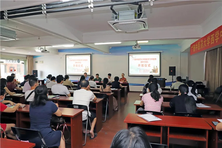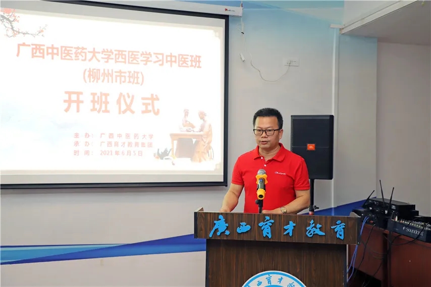 6月5日,由廣西中醫(yī)藥大學主辦,集團承辦的“西醫(yī)學習中醫(yī)”高級研修(柳州班)在集團柳州本部順利開班。廣西中醫(yī)藥大學成人教育學院院長、二級教授、博士生導師韋艾凌,副院長黃瑞誠,廣西中醫(yī)藥大學中醫(yī)基礎理論教研室主任、主任醫(yī)師蔣筱教授,集團總校校長梁國坤以及50余名學員參加了開班儀式。開班儀式由副院?長黃瑞誠主持。