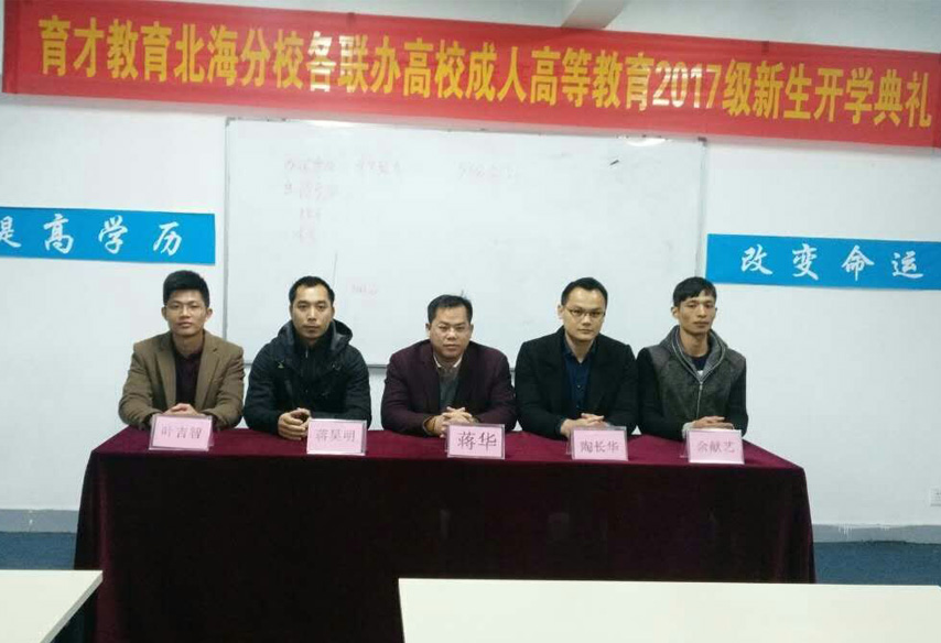 2月25日上午,育才北部灣分校隆重舉行育才聯(lián)辦高校北部灣分校2017級(jí)成人高等教育新生開學(xué)典禮,育才教育黨支部書記、集團(tuán)董事長(zhǎng)蔣華、育才桂林大區(qū)域總監(jiān)、柳州市育才教育培訓(xùn)中心副校長(zhǎng)蔣昊明、育才北部灣區(qū)域總監(jiān)、欽州分校校長(zhǎng)陶長(zhǎng)華、教學(xué)管理老師黃燕芳、符冰、劉怡伶、北海分校、防城港分校的負(fù)責(zé)老師均出席典禮,來(lái)自欽州市區(qū)及各縣的60多名新生代表參加了開學(xué)典禮。開學(xué)典禮由黃燕芳老師主持。