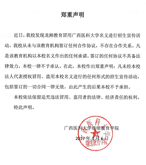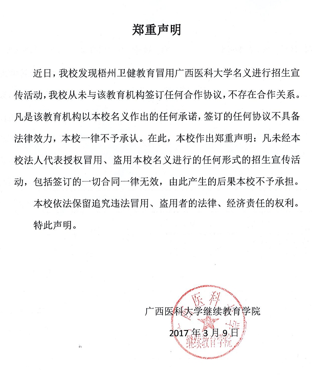 廣西醫(yī)科大學鄭重聲明